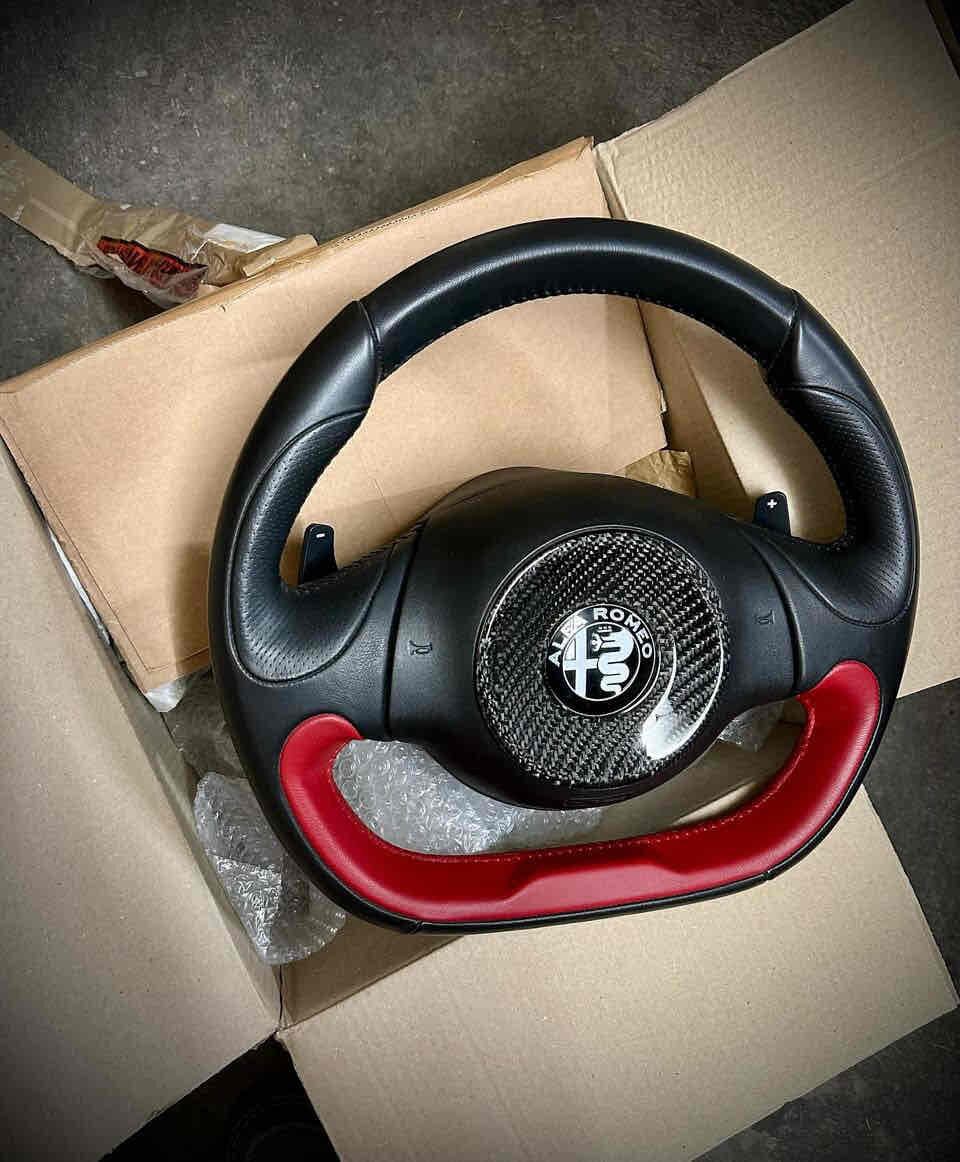 This cover attaches to the center of the steering wheel using double-sided tape.